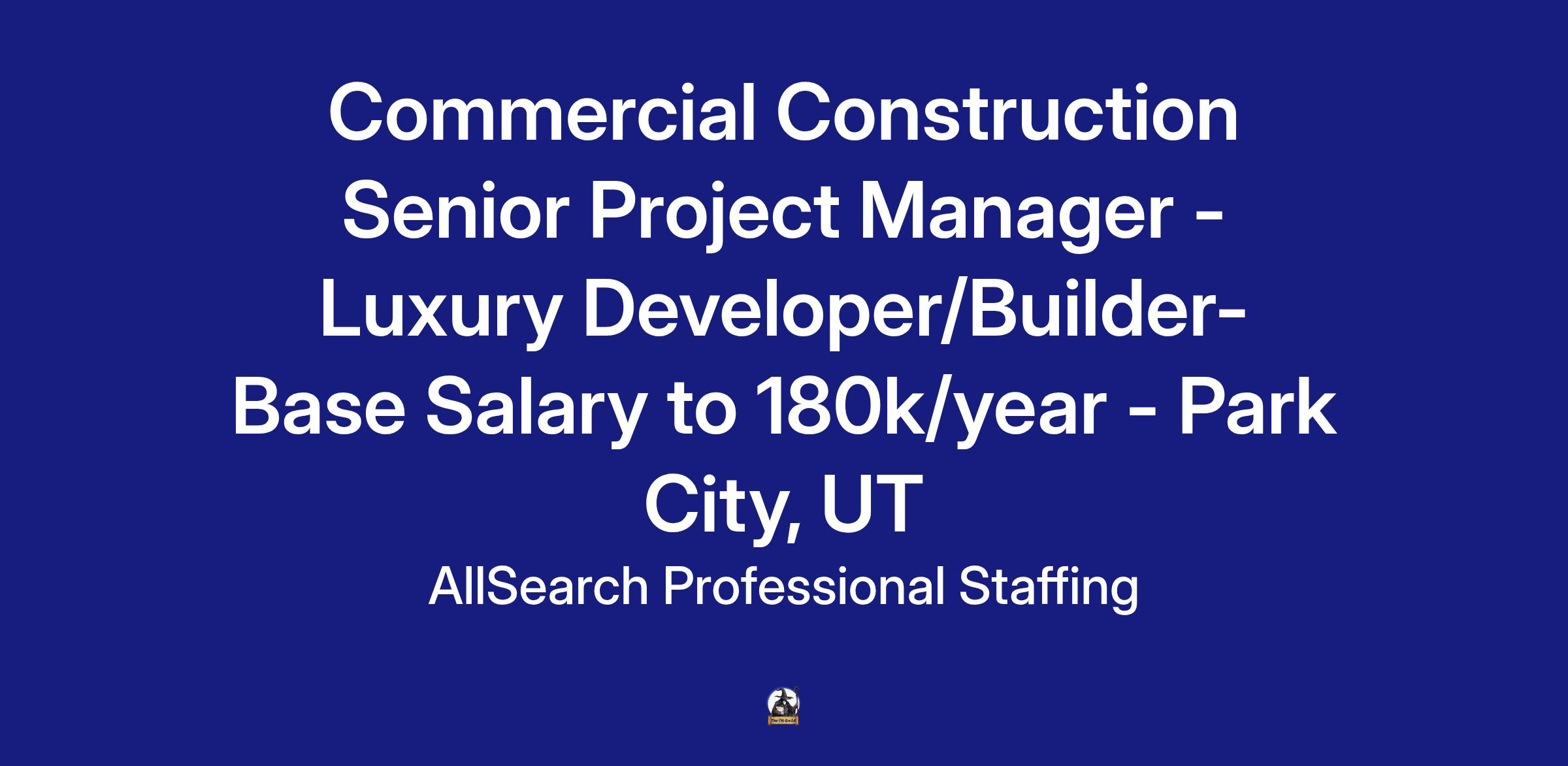 Commercial Construction Senior Project Manager - Luxury Developer/Builder- Base Salary to 180k/year - Park City, UT