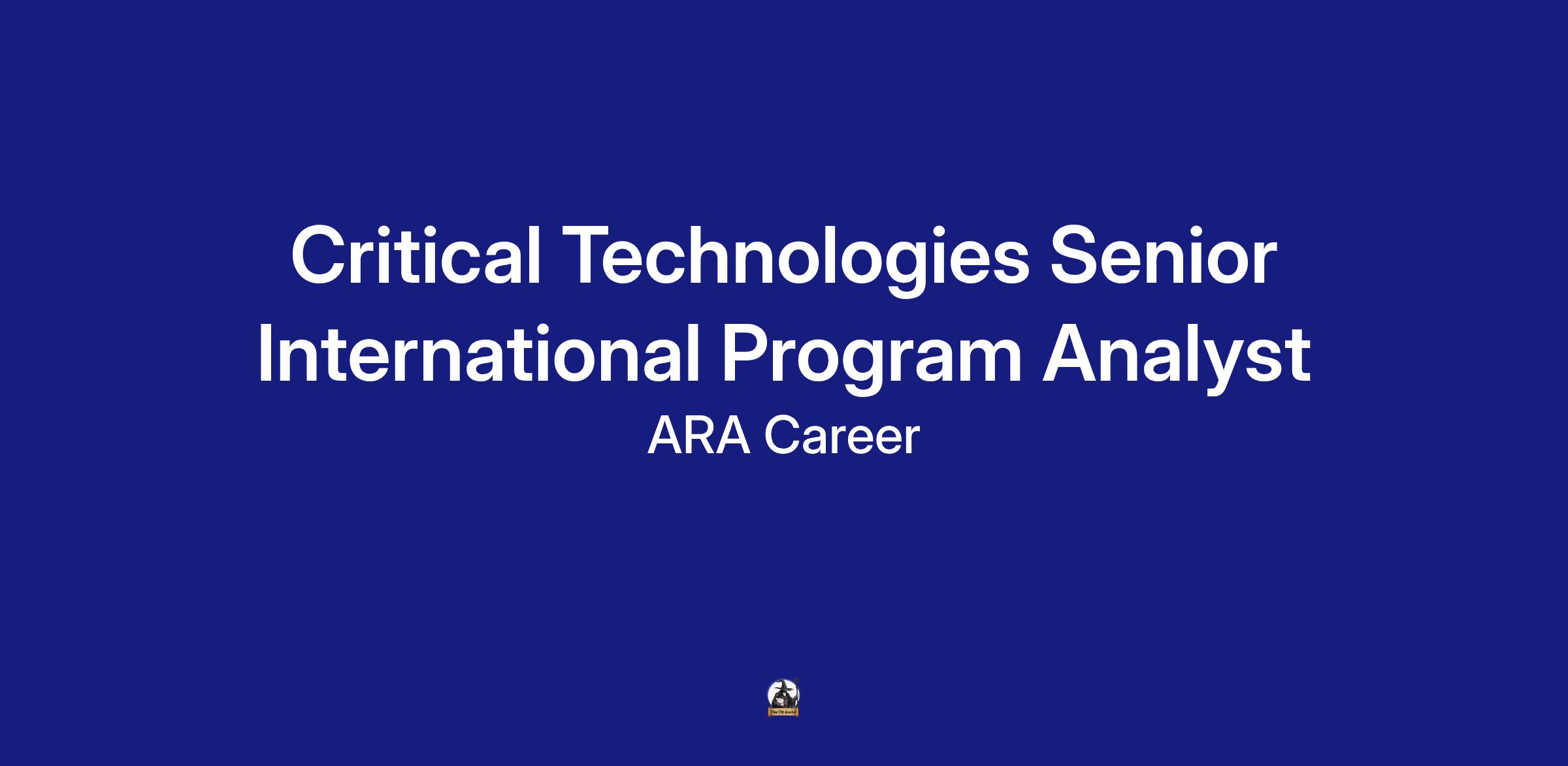 Please apply at www.careers.ara.com for the Critical Technologies Senior International Program Analyst