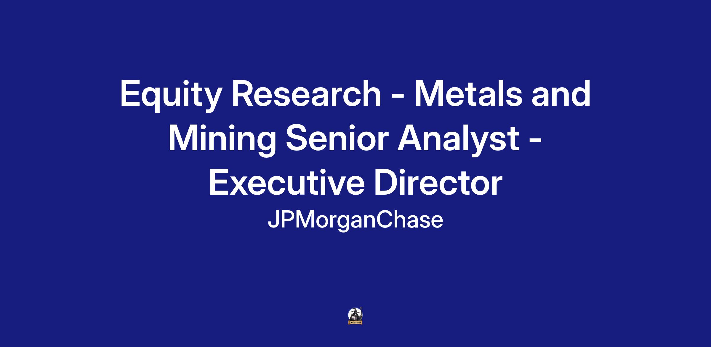 - Three years or more of senior analyst experience covering Metals & Mining
