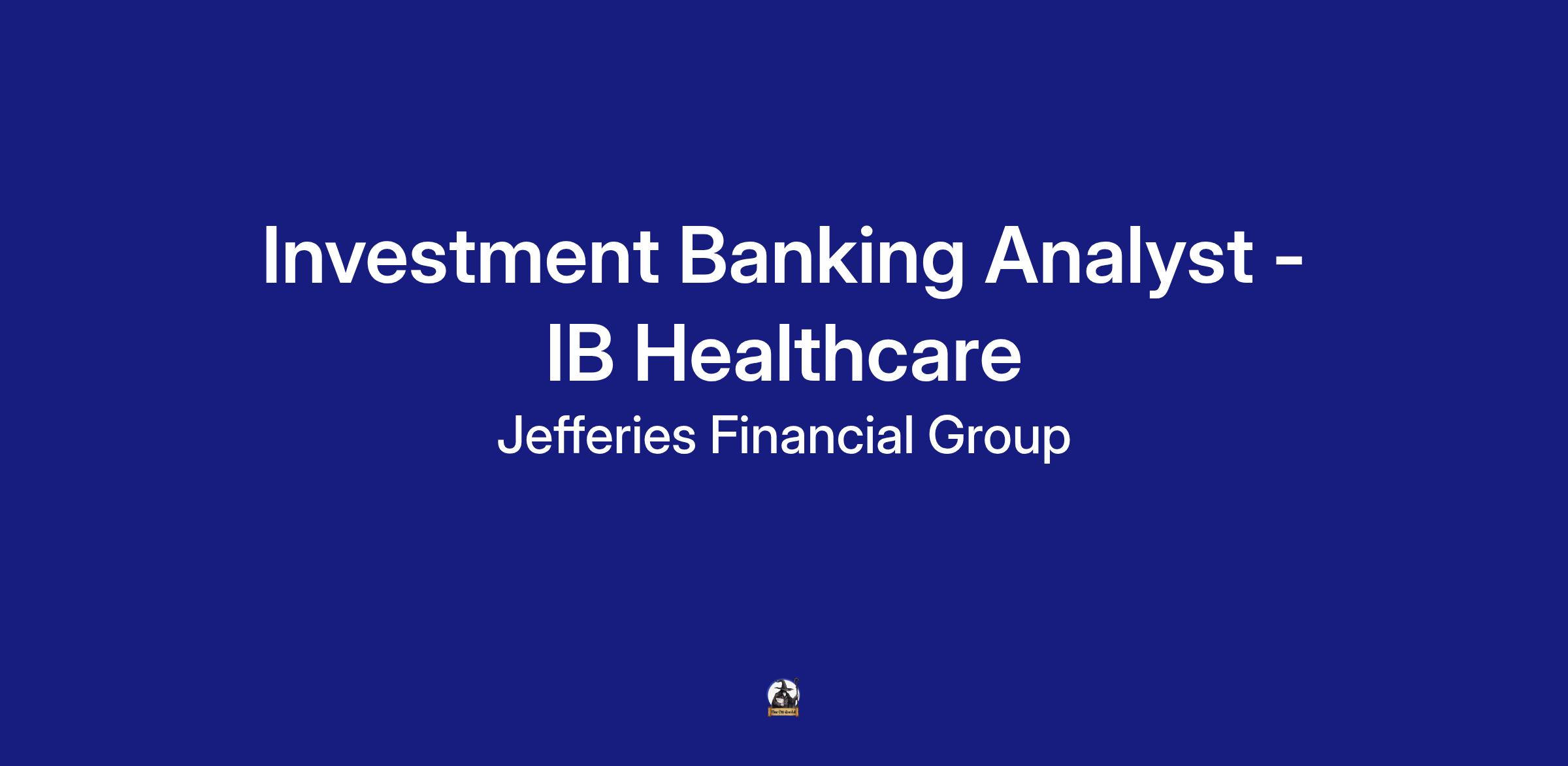 DescriptionInvestment Banking Analyst – Healthcare Generalist