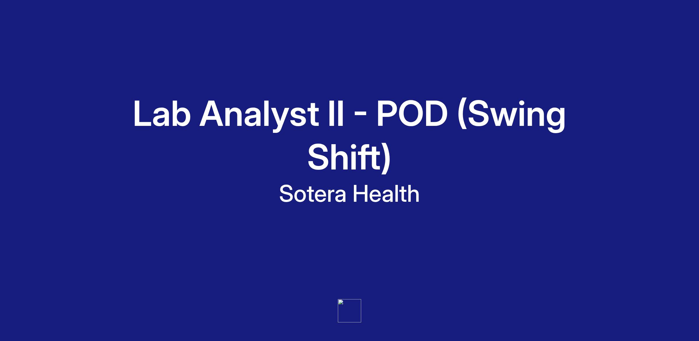 - Must have current a role equivalent to a Lab Analyst II; aligned with key duties listed below