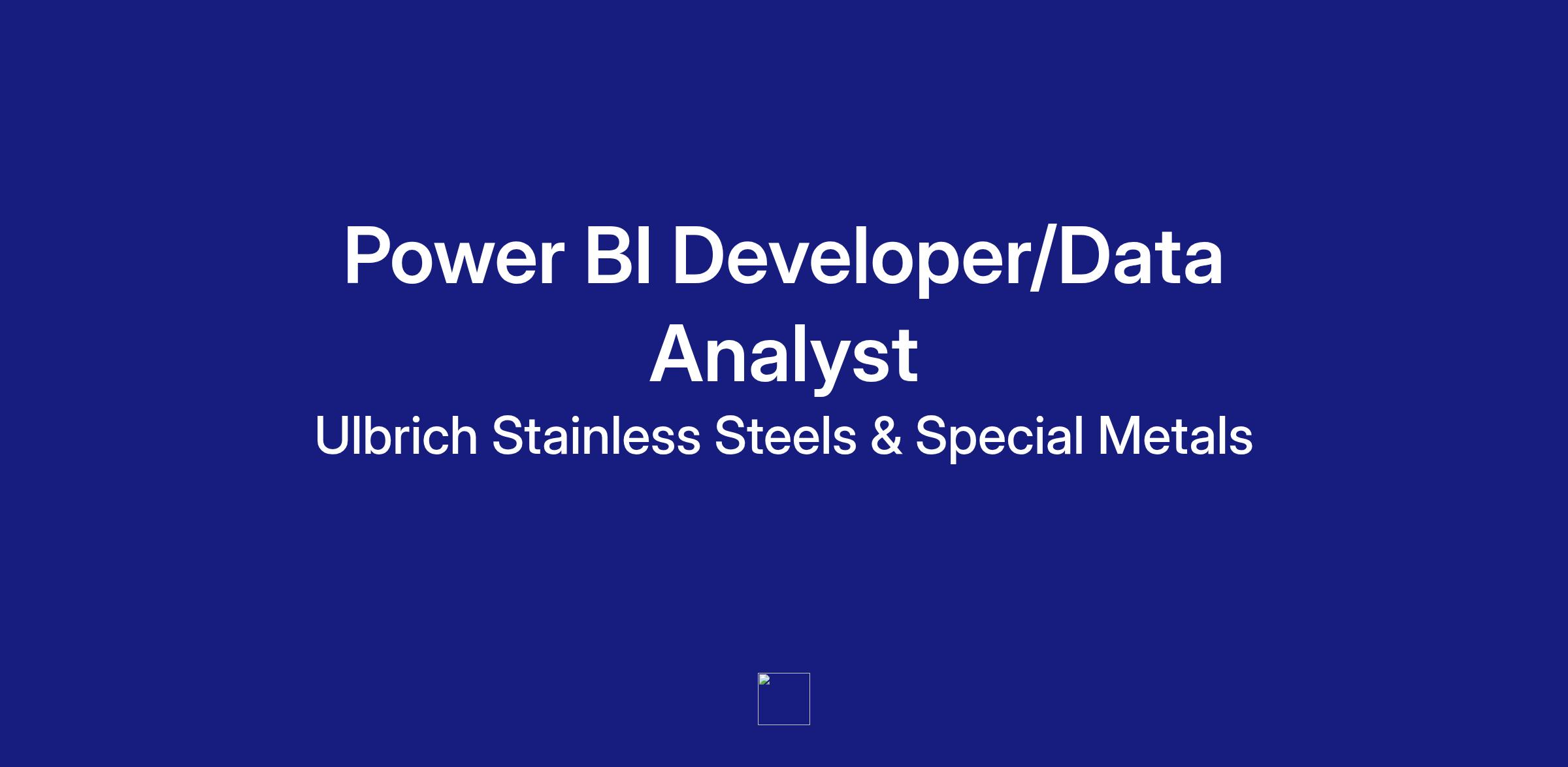Ulbrich Stainless Steels and Special Metals Inc. is looking for a detail-oriented Power BI Developer/Data Analyst. This entry-level role based at our corporate headquarters in North Haven, CT is ideal for individuals passionate about data visualization, analytics, and business intelligence. You will work closely with business stakeholders to transform raw data into actionable insights using Power BI and other analytical tools.
