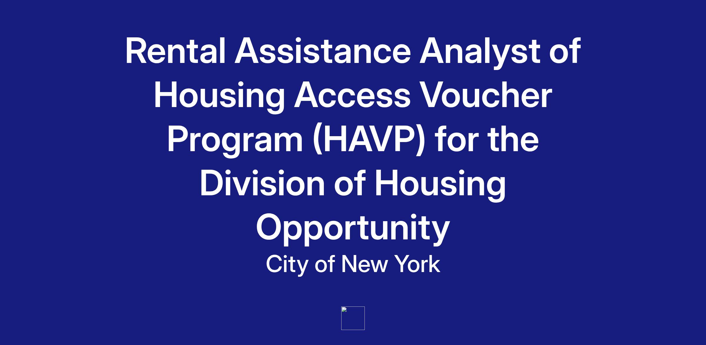 As an HAVP Rental Assistance Analyst within the Rental Subsidy & Supportive Housing Coordination (RSSHC) Unit, you will help formerly homeless, senior, low income, and other vulnerable New Yorkers access affordable housing subsidies through HAVP. The team's primary responsibilities are to ensure that eligible